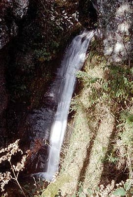 牛滝谷の滝は落差5mほど、実際の牛滝は3段に落ちる落差10mほどのもの。