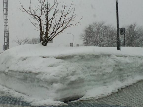 とはいえ、昨日までは雪が溶けかかっていたわけで、道路とか必要な部分は雪が片付けられてて無し。