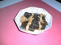 | 材料 鰯 昆布 かんぴょう 生姜、梅干1個(あれば) 調味料・・・しょうゆ、酒、砂糖 作り方 * かんぴょうは水に入れて柔らかくもどす。 * 鰯は皮を取り三枚おろしにしたものを大きければ半分にする。 * 昆布は汚れを取ってから袋に入れ霧を掛けてしばらく置くと扱い易い柔らかさになります。 幅広の昆布の場合縦半分に裂いておく。 昆布で鰯を巻きかんぴょうで縛る。 (昆布は煮ている内に広がり大きくなるので昆布の巻き方かんぴょうの結び方をきつくしないように!) * 大き目のなべに並べる。 * 生姜の薄切り、梅干をつぶして入れる。 * はじめは水だけで落し蓋をして昆布が柔らかく竹串が通るまで煮る。 (水を足しながら柔らかくなるまで時間をかける。) 調味料を入れる。 調味料はご家庭の味付けで・・・・・・ ポイント 調味料は昆布が柔らかくなってから入れます。 |