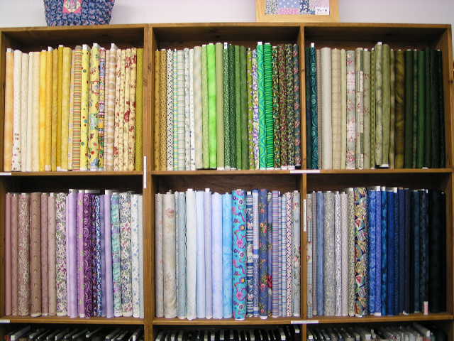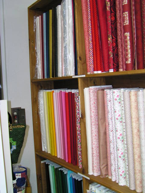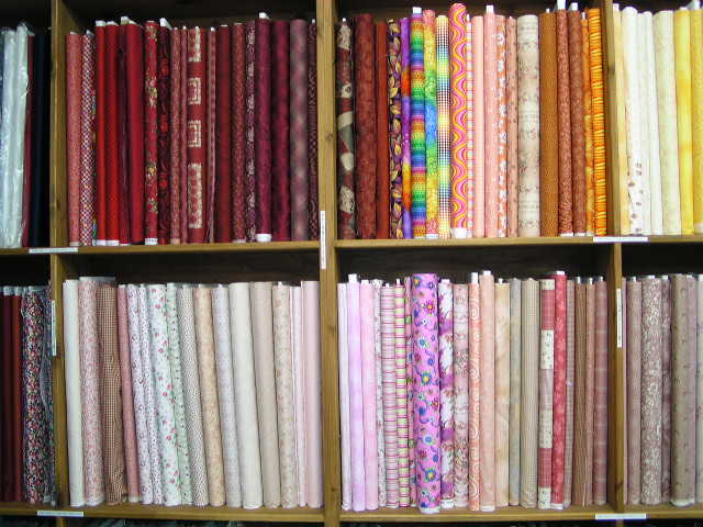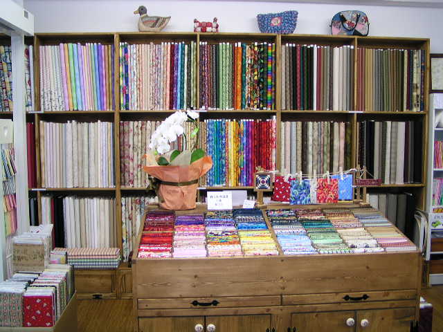 店内は、シックな布から、カラフルな布まで、豊富に取り揃えています。