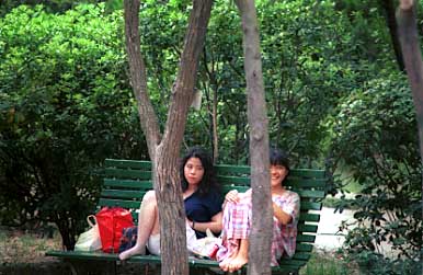 上海市民の憩いの場になっているので、みんなのんびりしています。将棋をしたり太極拳をする人がいたり、若い人達にとっては格好のデートスポットのようです。