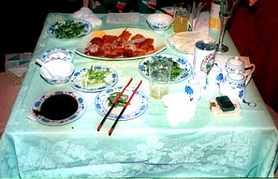 風呂に入ったあとは、夕食です。ホテルで同室になった日本人旅行者と一緒に北京ダックを食べにいきました。二人だったのでハーフサイズを頼んだのですが、それでもボリューム満点で食べきれなかった分はtake outにしました。