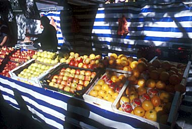 翌朝は朝早くからパリの名所観光へGO!!ちょうどバスチーユのマルシェが開かれている日にあたってるとわかり、市場大好き人間としてはまずはずせません。マルシェには人が一杯・・・という程でもありませんでしたが、肉、魚、野菜etc.パリッ子の胃袋を満たす屋台がずらっと並んでいます。