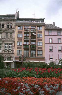 こちらの家々では窓辺に花が一杯飾られています。石造りの町並みに色鮮やかな花々がよく映えます。