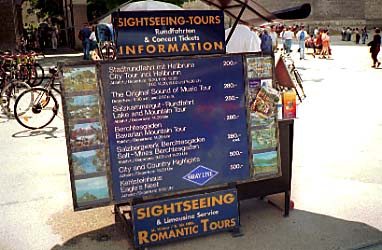 そうこうしているうち出発時刻も近づき、指定された広場へ向かいます。今回のツアーは名付けて「サウンド オブ ミュージック ツアー」・・・ていうツアーにしようかと思いましたが、廻る場所が私の好みからは少しはずれていたので、「レイク アンド マウンテェン ツアー」になりました。 どちらもメルヘンチックな感じでしょ。 だって会社が「ロマンティック ツアーズ」やもん。