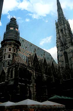 ヨーロッパは狭い路地の間にこういった大きな建物があるので、全景を入れるのは超広角がないとまず無理。当時私は超広角をもっていませんでしたので、この程度が一杯でした。シュテファン大聖堂は前が広場になっているのにこんなもんなんです。