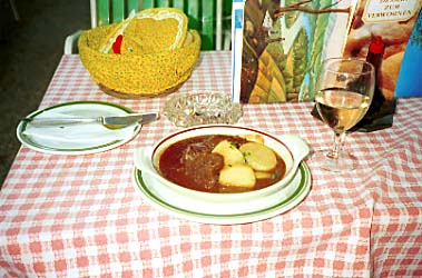 グヤーシュ(子牛の煮込み)にホイリゲがとても合うんだな〜。夏なのに何故か煮込み料理がおいしかったんだな。