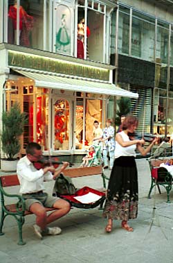 バイオリン弾きが大道芸になるのもヨーロッパならばこそという感じです。多分音大の生徒さんではないでしょうか。