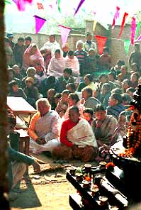 | ネパールの宗教はチベット仏教です。 (そんなことは言われなくても分かってるって?) 目玉の寺院は皆さんもよくご存知でしょう。 街中いたるところにマニ車があって道行く人々は、マニ車を回していきます。 手に持ってまわすマニ車をまわしている人も見かけました。 このマニ車って一回回すとお経を一回唱えたことになるっていうんですけど、これってかなりズボラだと思いませんか? (本当は文盲の人達が多いので仕方がないのでしょうネ。) チベット仏教と言えば「死者の書」というのをご存知でしょうか。 死後の世界を語ったものなんですけど、輪廻転生とが主題となっています。 チベット仏教の儀式はこれにのっとって行われています。 興味がある方は中沢新一氏が書いた「チベット死者の書」という本が読みやすいです。 |