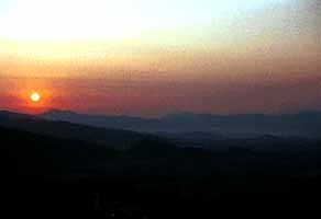 丘の中腹あたりにを歩いていると日が昇り始めました。