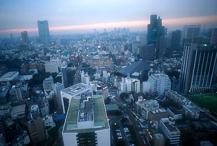 東京タワーから夕暮れを望む。 天気がよければ良かったんですけど、曇り空でした。