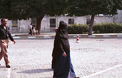 上の写真のようにチャドルを着た女性をたまにみかけますが、普通の欧米人のと同様の服装をしている女性の方が多いですね。