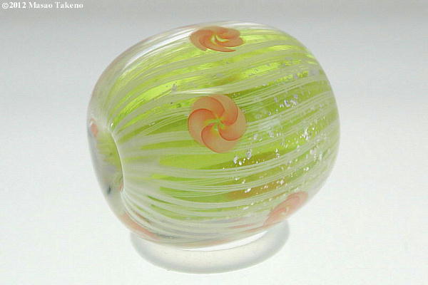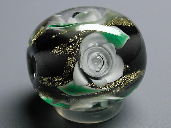 さて点打ちバラのとんぼ玉、うーーーーん、ちょっとずつは良くはなってきてるんですが...、歩留まりも悪いです。実は最近、バラらしい形というものがわからなくなってきて、頭の中がこんがらがっています。ちょっと考え過ぎなのかもしれません。上の3種類のバラは今日つくりましたが、バラに見えますか? 実は、つくっている最中は「これはいい!」と感じながら作成しているのですが、出来上がりを見ると花弁の形がイマイチだったり、縦に流れたりと、あまりいい出来ではないのです。なんでなんでしょうねぇ。
