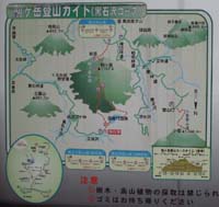 | Cさんがようやく合流し、マイクロに乗り込んで登山口に向かう。 町からも相当遠く、長い長い林道の奥にあるのだ。未舗装区間も長く、結構揺れるが、山深く入っていくんだなあと実感。 満員のマイクロが重そうに走っている。 すれ違うのが大変そうな凸凹道だが、幸い対向車もない。 ようやく辿り着いた黒石沢登山口はとても広い駐車場と立派で綺麗なトイレ舎があって、びっくり。 きっと沢山の登山者が訪れるのだろう。 案内板も大きくて詳しい。よく整備されていることが分かる。 それによれば、駐車場は10台可、登山口の標高は850mである。 |
