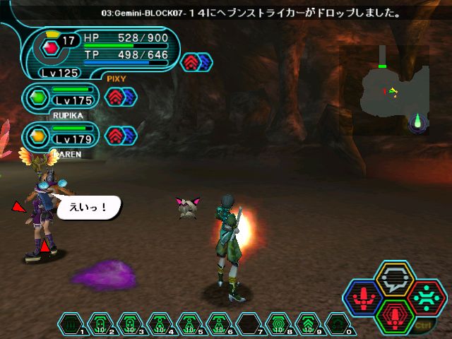 | ■08月03日:5倍期間終了 狙ったかのように5倍が終わってからやる気なくなってパッチ当てただけで止めてる私がいます。 この5倍期間あんまりいいことあったかなぁ・・・と思い返してみます。 アイマスの事務所の方とようやく出会えてアイテム移動してみたら回線落ちちゃってアイテム消滅とか うっかりミスでラッピーに囲まれて連続即死食らったとか、イルギルに連続で即死斬り食らったりとか まあよくある事ばかりですよ。TPは大分たまったのはあるかな? そんなこんなで最終日の朝、引いちゃったよ・・・・・ なんか銃アイコンが落ちた〜 ![]() (c)SEGA,2000,2006. テロップ見て目が点になりました。 ![]() (c)SEGA,2000,2006. 思いがけずにヘブンストライカーをげっちゅです。まだ鑑定してないけど・・・ 残るアイテムは塗膜のみ。ま、その内出るでしょ。 今日の一言:実は移動で消えちゃったアイテムに塗膜が。またひろっちゃる!! |