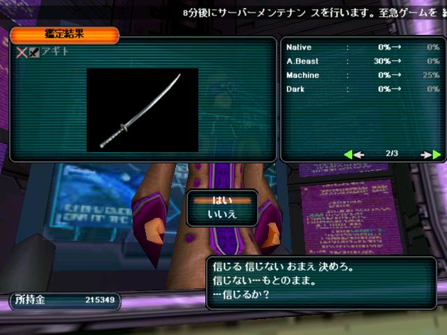 | ■08月31日:メールまわってきた もちろんPSOBBのです。 9/1より色々とアイテムが追加されるようですが・・・・・・ 〔武器〕 ・ガラティーン(セイバー) ・ゼロディバイド(ダガー) ・アステロンベルト(パルチザン) ・灼炎鳳牙(しゃくえんほうが)(クロー) 〔防具〕 ・DFの盾(シールド) ・デ・ロル・レ・シールド(シールド) ・イプシガード(シールド) 武器はほぼ新規のアイテムばかりなのはいいんですが・・・・・防具ってどの敵から出るか もうバレバレ。とすると・・・・タリスやマフ出なくなっちゃうんだ・・・・ Nデ・ロル・レに割り振ってあればいいな・・・・ 今日の一言:DFとイプシロンも落とすのね・・・ |