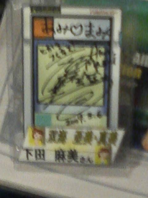 | ■3月8日:夢みたい2 昨日の日記。 3/4にライブに行ってきたと昨日更新しました、 その時に実は無理な御願いを出演者の方にしちゃったんですよ。 「ホ−ムである渋谷G-LINKに若林さんと下田さんとたかはしさんのサインだけ無いんです。是非ともサインを!!」 本当に無謀ですよね〜。勿論相手は「忘れちゃうんでファンレターでお願いね〜」と仰って下さったのですが、 昨日、いつものようにアイマスをやりに行って・・・・・・・・・ と言う内容で一昨日は若林さんのサインカード等々が増えてました。 そして昨日。 ![]() ・・・・・・下田さんも来たっ!! まさかまさかの奇跡です。 速攻昨日は下田さんのブログにお礼の返事を書いてきました。 夢が叶うってやっぱり幸せです。 今日の一言:と、本当は3/7に更新予定だったけど家にデータ持って帰るの忘れて今日更新だったり。 |