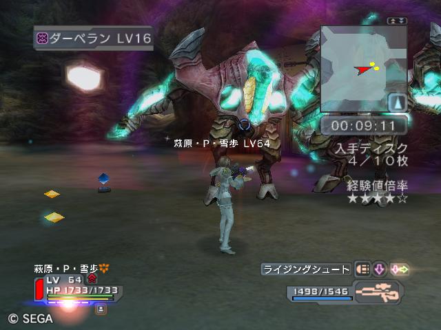 | ■9月11日:ようやく来たよ〜 昨晩いつものようにディマゴラスルートをプレイしててモトゥブから聖地に飛ぶ前に光アゲハ、 闇ライフルに装備を変えていざ!と先に進んだら何故か画面真っ暗。 なんだこれ?と思ったところに敵ターゲットロック。 その名はヴァンダ。玉と炎撒き散らすエネミー。あなたに委ねる秘密の内訳・・・ってなんでエージェントの歌詞にかわっとるねん。 ようやくレアマップを引けました。初めてのダーベランに初めてのジャッゴ・アクテ。 ダーベランってビル・デ・ビアと大して違い無いんですね〜。シュトルムバスター撃ったらダブルラリアッ上かましてるし。 念の為に記念撮影。 ![]() (c)SEGA,2006.2007. ![]() (c)SEGA,2006.2007. で、問題のお宝ですがダーベランはコペルニアとソダ・ギガッサ。 ジャッゴ・アクテはジャッゴとハナビ×2。・・・・ピコハン〜>< 今日の一言:今晩また出てくれるといいな・・・ |