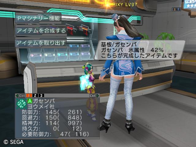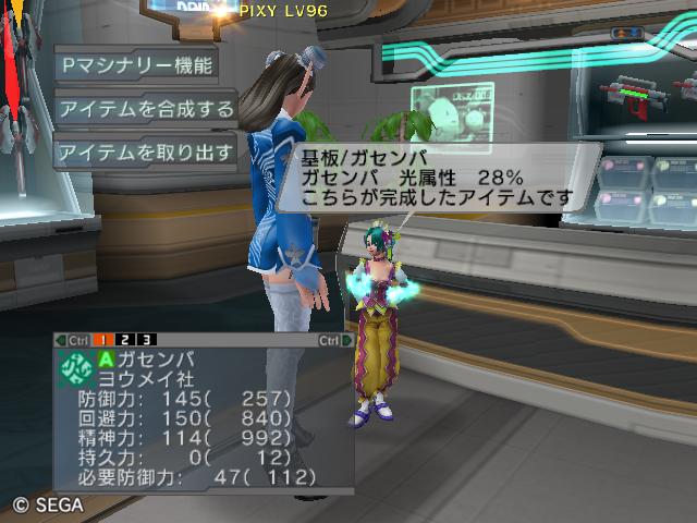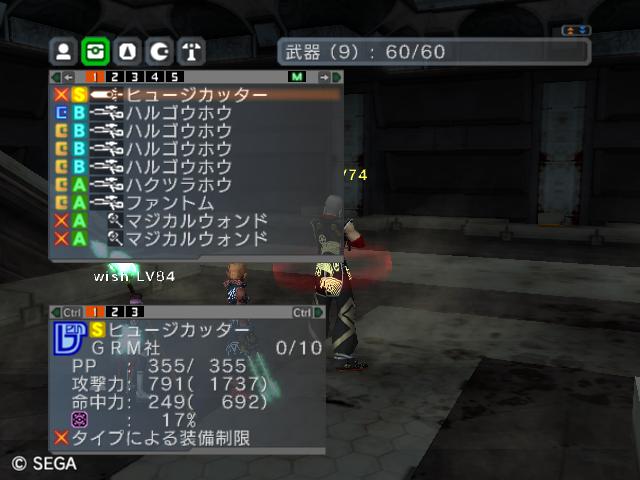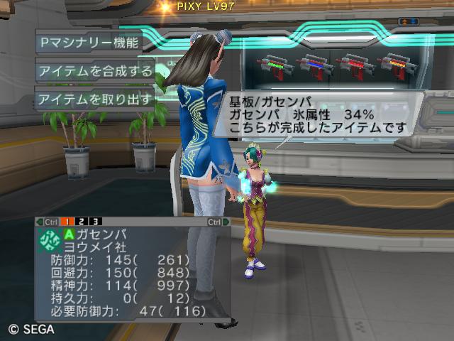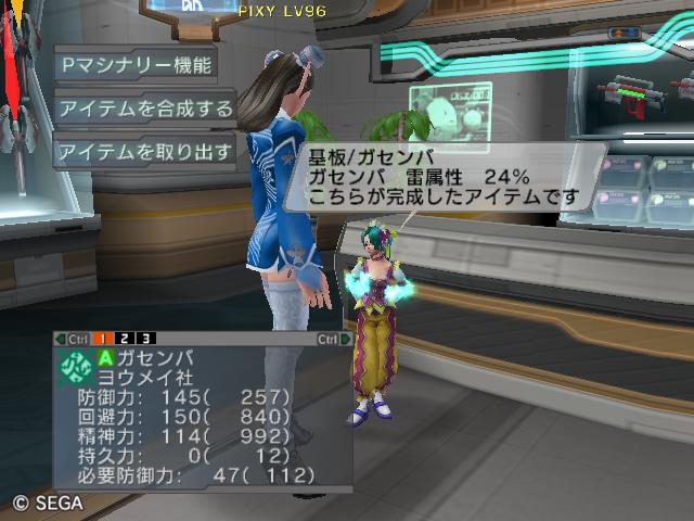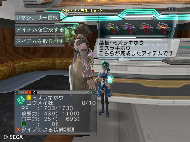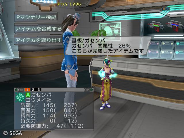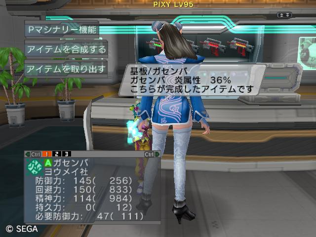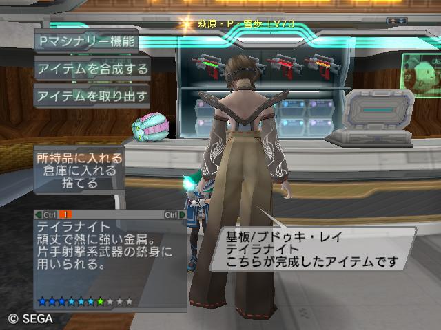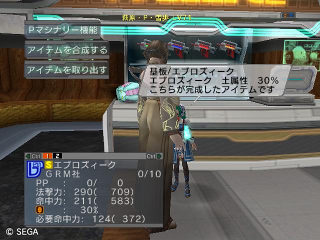 | ■11月26日:週末のPSUパート2 流石に3連休ともなると鬼のようにプレイ・・・って程でもないけど色々と写真をパシャパシャ撮ってます。 殆どが合成の泣ける結果なんですけどね・・・・・ ちなみに今の状況は、 ・E1 1st:LV35 fT1 ・E2 1st:LV97 fT15 2nd:LV80 fG15 3rd:LV74 GT10 4th:LV27 PR2 LVキャップの120なんて遠い、遠い。 ガセンバの合成結果その1。炎属性では最高の鎧(Aランクでは)です。 ![]() (c)SEGA,2006.2007. Sランクのライフル合成成功。+1までは磨いてキラーシュート用に。 ![]() (c)SEGA,2006.2007. 実はこれが2個目のオキク・ドールだったりします。合成失敗だと素材ばかりで・・・ ![]() (c)SEGA,2006.2007. まさかこっちも素材になるとは思わなかった・・・orz ![]() (c)SEGA,2006.2007. ガセンバの合成結果その2。お店に並べました。 ![]() (c)SEGA,2006.2007. ガセンバの合成結果その3。お店に並べました。 ![]() (c)SEGA,2006.2007. ガセンバの合成結果その4。お店に並べました。 ![]() (c)SEGA,2006.2007. ガセンバの合成結果その5。やっと雷属性30%越えた・・・・ ![]() (c)SEGA,2006.2007. ガセンバの合成結果その6。お店に並べました。 ![]() (c)SEGA,2006.2007. ガセンバの合成結果その7。確保、確保〜♪ ![]() (c)SEGA,2006.2007. ガセンバの合成結果その8。いらねー ![]() (c)SEGA,2006.2007. ガセンバの合成結果その9。お店に並べました。 ![]() (c)SEGA,2006.2007. ガセンバの合成結果その10。お店に並べました。 ![]() (c)SEGA,2006.2007. ガセンバの合成結果その11。お店に並べました。 ![]() (c)SEGA,2006.2007. ガセンバの合成結果その12。お店に並べました。 ![]() (c)SEGA,2006.2007. ガセンバの合成結果その13。お店に並べました。 ![]() (c)SEGA,2006.2007. ガセンバの合成結果その14。お店に並べました。 ![]() (c)SEGA,2006.2007. ガセンバの合成結果その15。お店に並べました。 ![]() (c)SEGA,2006.2007. ガセンバの合成結果その16。氷属性もようやくいい属性値が出てきました。 ![]() (c)SEGA,2006.2007. 初のバーン/レジストげっちゅ。ちょっと嬉しかったです。 ![]() (c)SEGA,2006.2007. 双頭の守護獣Bにて。1stはまだ10%になってなかったのでポイント稼ぎ中に。 ![]() (c)SEGA,2006.2007. ガセンバの合成結果その17。2ndに移動。 ![]() (c)SEGA,2006.2007. 何気に基板/レンゴウボウ初げっちゅだったりします。 ![]() (c)SEGA,2006.2007. そしてショック/レジストも初げっちゅ!!これで雷獣の都が楽になる〜♪ ![]() (c)SEGA,2006.2007. 忘れた頃の悪夢。3つ目かぁ・・・・5キャラいるからまだ大丈夫、大丈夫・・・・ ![]() (c)SEGA,2006.2007. オルタレジンを集めてる最中に。オルタレジンで破産寸前です・・・ ![]() (c)SEGA,2006.2007. 今日の一言:ガセンバ基板、まだささってるけどオルタレジンが・・・・ |