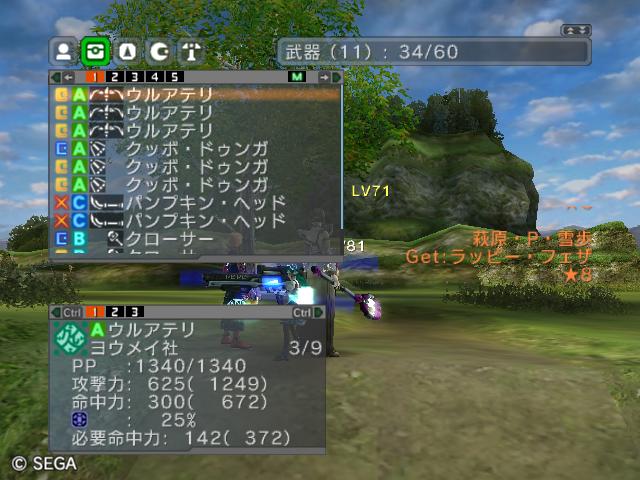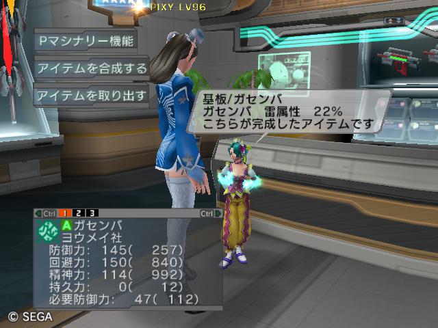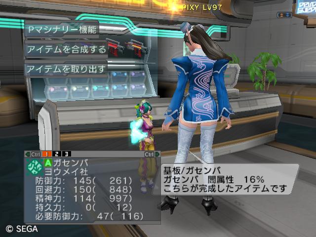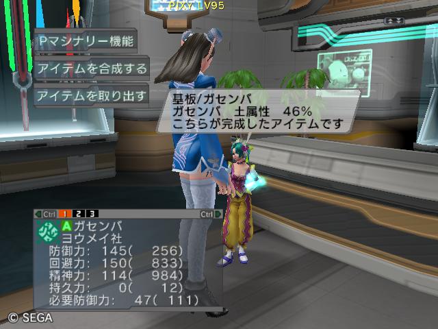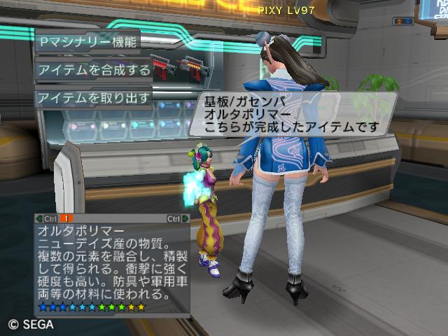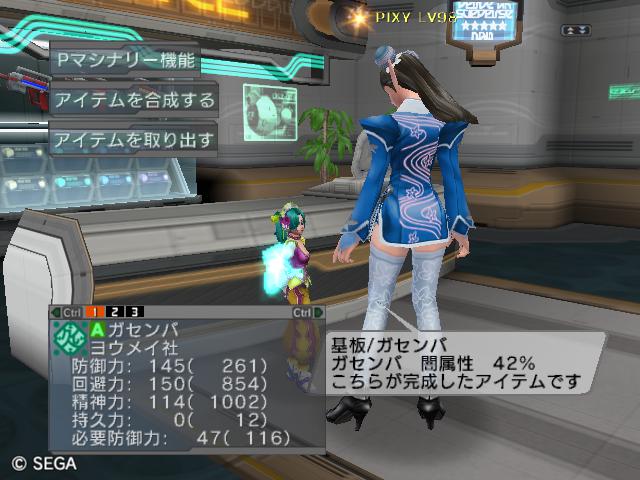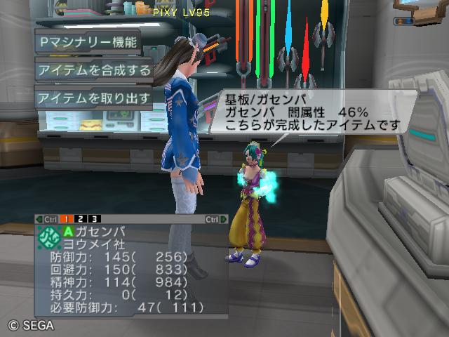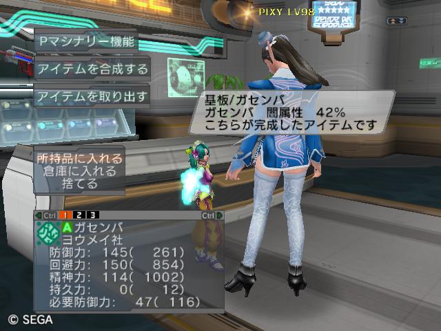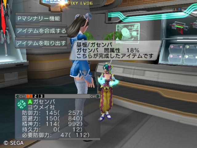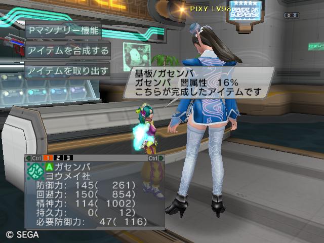 | ■11月26日:週末のPSUパート2 流石に3連休ともなると鬼のようにプレイ・・・って程でもないけど色々と写真をパシャパシャ撮ってます。 殆どが合成の泣ける結果なんですけどね・・・・・ ちなみに今の状況は、 ・E1 1st:LV35 fT1 ・E2 1st:LV97 fT15 2nd:LV80 fG15 3rd:LV74 GT10 4th:LV27 PR2 LVキャップの120なんて遠い、遠い。 ガセンバの合成結果その1。炎属性では最高の鎧(Aランクでは)です。 ![]() (c)SEGA,2006.2007. Sランクのライフル合成成功。+1までは磨いてキラーシュート用に。 ![]() (c)SEGA,2006.2007. 実はこれが2個目のオキク・ドールだったりします。合成失敗だと素材ばかりで・・・ ![]() (c)SEGA,2006.2007. まさかこっちも素材になるとは思わなかった・・・orz ![]() (c)SEGA,2006.2007. ガセンバの合成結果その2。お店に並べました。 ![]() (c)SEGA,2006.2007. ガセンバの合成結果その3。お店に並べました。 ![]() (c)SEGA,2006.2007. ガセンバの合成結果その4。お店に並べました。 ![]() (c)SEGA,2006.2007. ガセンバの合成結果その5。やっと雷属性30%越えた・・・・ ![]() (c)SEGA,2006.2007. ガセンバの合成結果その6。お店に並べました。 ![]() (c)SEGA,2006.2007. ガセンバの合成結果その7。確保、確保〜♪ ![]() (c)SEGA,2006.2007. ガセンバの合成結果その8。いらねー ![]() (c)SEGA,2006.2007. ガセンバの合成結果その9。お店に並べました。 ![]() (c)SEGA,2006.2007. ガセンバの合成結果その10。お店に並べました。 ![]() (c)SEGA,2006.2007. ガセンバの合成結果その11。お店に並べました。 ![]() (c)SEGA,2006.2007. ガセンバの合成結果その12。お店に並べました。 ![]() (c)SEGA,2006.2007. ガセンバの合成結果その13。お店に並べました。 ![]() (c)SEGA,2006.2007. ガセンバの合成結果その14。お店に並べました。 ![]() (c)SEGA,2006.2007. ガセンバの合成結果その15。お店に並べました。 ![]() (c)SEGA,2006.2007. ガセンバの合成結果その16。氷属性もようやくいい属性値が出てきました。 ![]() (c)SEGA,2006.2007. 初のバーン/レジストげっちゅ。ちょっと嬉しかったです。 ![]() (c)SEGA,2006.2007. 双頭の守護獣Bにて。1stはまだ10%になってなかったのでポイント稼ぎ中に。 ![]() (c)SEGA,2006.2007. ガセンバの合成結果その17。2ndに移動。 ![]() (c)SEGA,2006.2007. 何気に基板/レンゴウボウ初げっちゅだったりします。 ![]() (c)SEGA,2006.2007. そしてショック/レジストも初げっちゅ!!これで雷獣の都が楽になる〜♪ ![]() (c)SEGA,2006.2007. 忘れた頃の悪夢。3つ目かぁ・・・・5キャラいるからまだ大丈夫、大丈夫・・・・ ![]() (c)SEGA,2006.2007. オルタレジンを集めてる最中に。オルタレジンで破産寸前です・・・ ![]() (c)SEGA,2006.2007. 今日の一言:ガセンバ基板、まだささってるけどオルタレジンが・・・・ |