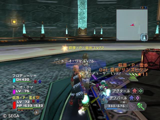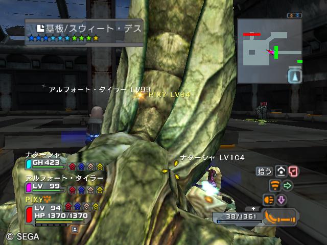 | ■11月19日:週末のPSU ワールド統合しての初の週末。何をやろうか?ですが結局いつもと何も変わらず。 ああ、アイマスの元事務所の方とパトカ交換をして一応W1との行き来は出来るようになってます。 あちこち冒険はするんですが、どうも目標が定まらないと言うよりも育成が追いついてない感じですね。 1st〜4thまでで行きたい所があってもうまく装備が整ってないとか。 そんな中、とうとうパシリをニャンス(PH423)からニャックル(PH422)に戻した直後やってくれました。 ![]() (c)SEGA,2006.2007. ![]() (c)SEGA,2006.2007. 肝心の光と雷はいつものようにオルタポリマーに変換してくれましたがよくやった!! これで最凶の砂獣とHIVEは安心です。 基板/ガセンバはどうも私が1人で買占めに走ってる感がありますが・・・・ 基板代が8000以下ならば即買いで動いてます。気付くとパシリに3枚挿して倉庫に10枚もあるし。 問題はオルタレジンなんですけどね・・・・流水の神殿Sのブロック1のみぐるぐるがいいのかな? オルタレジン拾えて基板/ヒロクテリが狙えるのでかなり楽で一番面倒なシノワ・ヒドキ相手にしなくてもいいし。 またさりげなく基板/アスールファイア(☆9グレネード)の増産もしてたり。 そんなこんなで素材がどんどん不足して仕方なくパル・エボン掘りに草原の支配者に通っていたのですが、 ようやくディーガがLV31になりました。 ![]() (c)SEGA,2006.2007. デカッ!! なんだこの隕石?って感じです。でも威力はね・・・・・ JAのついた攻撃から見るとやっぱりしょぼい感じですね。 今日の一言:でも4thがグレネード装備出来るまでが遠い・・・ |