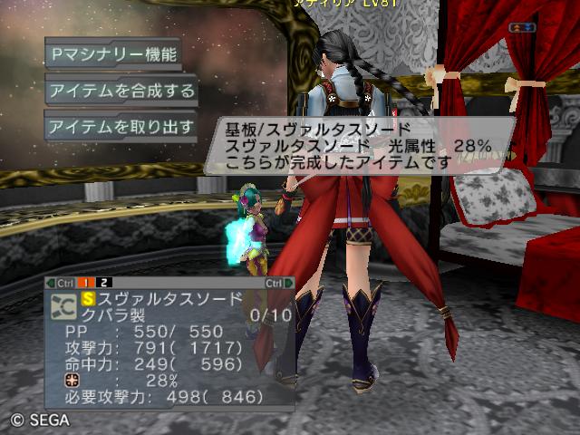 | ■7月8日:と言う事で昨日の続き。 昨日の日記で、「91%の成功率だけど今晩取り出しちゃおうかな〜?」 はい、しっかりと取り出してみました。 あー、91%でもあっさり失敗するんだ。 ![]() (c)SEGA,2006.2007.2008. 光28%・・・ま、まあ実用LVかな? ![]() (c)SEGA,2006.2007.2008. ポーン( Д )⌒Y⌒Y⌒Y⌒Y⌒Y⌒...。....。コロコロ ![]() (c)SEGA,2006.2007.2008. ほ、炎42%?一体どれだけ価値あるのよ?と検索かけてみたら・・・・ 3000万メセタ ・・・・ハ?ワタシコンナ大金モッタコトナイアルヨ。 ド、ド、ド、ドウスルネ、コレ。デモプロトランザーダカライクラデモツカイミチアルネ。 今日の一言:そして今朝またスヴァルタス・エッジを1つ拾ったと言う・・・・ |