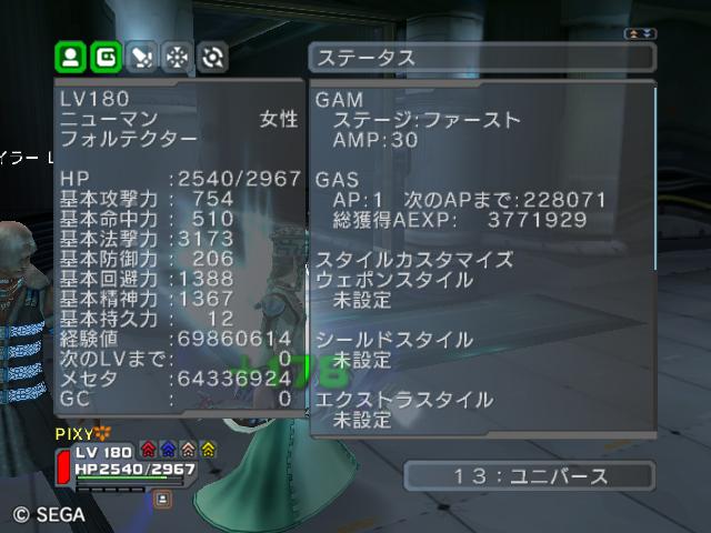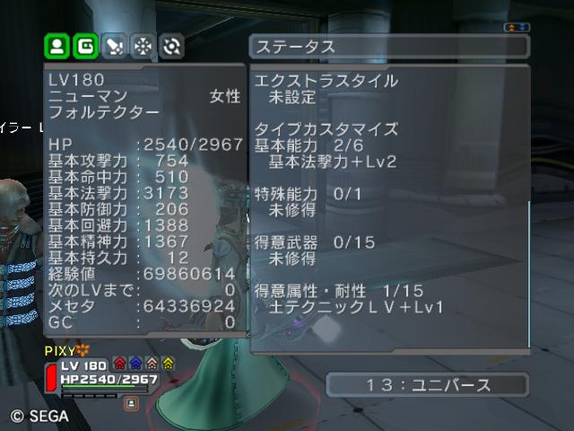 | ■5月11日:ポップンやりまくり。 あんた馬鹿じゃね?ってくらいやってました・・・・稼働2ヶ月で278クレとかどんだけ? 超CHALLENGEモードが245回、EXPERTモードが8回、NET対戦モードが25回と。 隠し曲解禁の為ってのもあるんですが、NORMAL譜面を埋める為に必死になってたというのが本音。 御蔭様で今日までにNORMAL譜面757曲埋まりました(5/11時点で最高は758曲)。 fffff Op.2のHYPER難し過ぎる・・・しっかり逆ボーダーかまして死にました。 次にやればクリアできそうだけど、NORMAL譜面埋めたいからな〜。 それからPSU。アップデート後からE2の1stばかり動かしてます。 こんなん出来ました。でもどこで装備する? ![]() (c)SEGA,2006.2007.2008.2009. E1の1st用に。 ![]() (c)SEGA,2006.2007.2008.2009. E1の1st用に2。 ![]() (c)SEGA,2006.2007.2008.2009. 現在のE2の1stステータスです。 ![]() (c)SEGA,2006.2007.2008.2009. 現在のE2の1stステータス2です。 ![]() (c)SEGA,2006.2007.2008.2009. みてわかる通り、条件ミッション3回しかやってません。 ソロきつ過ぎです。これをあと47周やれとかどんな拷問? だけどそれを少しでも楽にしようと基本法撃力+LV2取ってようやく条件ミッションでも サイコウォンド装備出来るようにしました。これで多少はマシかも。 あとは氷テクニックLV+LV1と基本防御力+LV2を取らないと。 今日の一言:GBRは40%までなんとかあげたよ〜。 |