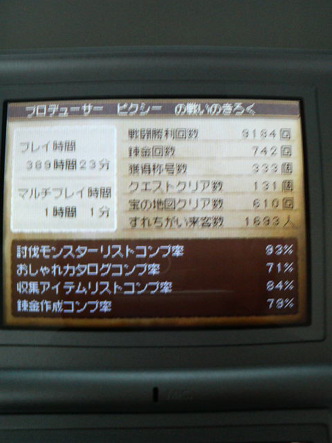 | ■9月24日:充実したシルバーウイークだった? 土曜日は働いて、日曜日は遊んでて、月曜日は遊んでて、火曜日は眠ってて、水曜日は遊んでた。 うん、意味不明な羅列になりましたね。特に火曜日が意味不明なのはこういう事です。 月曜日の夜にみんなで集まって食べ放題でガッツリとご飯食べて23時半から徹カラ。 7時にお店を出てへろへろになって帰宅、寝る。そういう事。 アイマスDS、そらいろと購入して・・・・どちらもあんまり進んでない。 アイマスDSは3キャラともさわりをプレイしただけ。 そらいろはつばめ世界のつばめルートを7/13まで進めたかな? その代わり酷いやりこみのゲームがここに。 ![]() まあなんだ、たった1万回の戦闘ですよ。 で、話をまた元に戻しまして日曜日は自分の用事と知人の用事の両方をこなしてました。 まず代々木で11/15のライブチケットを取りに店頭へ並んで無事取れました! ![]() ・・・番号は気にしなくていいと思うよ、うん。出演者の方が目の前かぁ・・・ その後に代々木上原に移動して竹本泉原画展に行ってきました。猫が可愛いかったよ、猫。 話はまたまた変わって先週火曜日にはこんなものも届いてたりして。 ![]() 幕張メッセ、行った事ないのに・・・ 今日の一言:今週末は東京ゲームショー。行った事ないし行かないからどうでもいい。 |