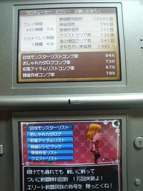 | ■9月8日:サボりにサボってた。 生きてますよ〜!私はちゃんと生きてますよ〜〜!! PSUはなんかあまりやる気なくなって2日にいっぺん繋いでちょこちょこやってって感じですね。 イベント報酬が2週間後とか遅過ぎ。とっととテクLV上げたいのに・・・・ ![]() その代り↑DQ9は酷い状態になりました。やりこみ過ぎ。 全員とも全職業LV99にまで育てて今は主人公の転生をしまくってます。 転生=LV99をLV1に戻す。 なんの利点があるの?と言われると、LVの横に+1とか書かれます。 早く10回転生して+10(表記は☆)にするんだ!しかもその時称号も貰えるみたいだし。 ってそれがやりこみ過ぎだと・・・・ 今日の一言:そらいろは来週発売か。ポンコツ具合が楽しみ。 |
