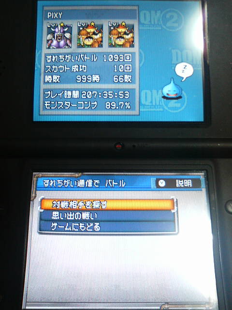 | ■6月16日:やりこみ 今までで色んなゲームをやりこんできました。 4年かけて地下1000Fクリアしたゲーム、2年間仙窟をSFCで掘り続けて、SSでも1年掘り続けたゲーム、 ビジュアルメモリを馬鹿みたいに買って20キャラも作ったオンラインゲーム、そしてPCでもやる馬鹿。 その続編がとんでもなく糞ゲーっぽいのに総計4000時間以上も未だやり続けてたりと。 どれがどのゲームかは触れませんがその歴史にまた1ページ追加されました。 そのゲームの名はドラゴンクエストモンスターズジョーカー2 と言うわけでまずはこれを見てほしい。 ![]() すれ違い通信バトルカンストしました。どんだけやってるんだよ・・・・ ちなみにその時のすれ違い報酬全部メモってあるんだな。 5勝:ホイミスライム 10勝:すばやさの種×10 25勝:ドラゴン 50勝:はぐれメタル 75勝:いのちのきのみ×10 100勝:ゴールデンゴーレム 150勝:力の種×10 200勝:スライダーヒーロー 210勝:力の種×5 220勝:かしこさの種×5 230勝:ふしぎなきのみ×5 240勝:守りの種×5 250勝:はくりゅうおうLV40(ゆうき、守備力アップ2) 260勝:いのちのきのみ×5 270勝:いのちのきのみ×5 280勝:はくりゅうおうLV40(ゆうき、守備力アップ2) 290勝:すばやさの種×5 300勝:すばやさの種×5 310勝:いのちのきのみ×5 320勝:ふしぎなきのみ×5 330勝:すばやさの種×5 340勝:守りの種×5 350勝:いのちのきのみ×5 360勝:ふしぎなきのみ×5 370勝:いのちのきのみ×5 380勝:いのちのきのみ×5 390勝:かしこさの種×5 400勝:すばやさの種×5 410勝:いのちのきのみ×5 420勝:いのちのきのみ×5 430勝:ふしぎなきのみ×5 440勝:守りの種×5 450勝:かしこさの種×5 460勝:すばやさの種×5 470勝:すばやさの種×5 480勝:かしこさの種×5 490勝:すばやさの種×5 500勝:すばやさの種×5 510勝:守りの種×5 520勝:守りの種×5 530勝:いのちのきのみ×5 540勝:力の種×5 550勝:いのちのきのみ×5 560勝:守りの種×5 570勝:守りの種×5 580勝:かしこさの種×5 590勝:力の種×5 600勝:守りの種×5 610勝:いのちのきのみ×5 620勝:いのちのきのみ×5 630勝:力の種×5 640勝:力の種×5 650勝:すばやさの種×5 660勝:守りの種×5 670勝:すばやさの種×5 680勝:いのちのきのみ×5 690勝:いのちのきのみ×5 700勝:アトラスのかなづち 710勝:すばやさの種×5 720勝:かしこさの種×5 730勝:いのちのきのみ×5 740勝:守りの種×5 750勝:力の種×5 760勝:力の種×5 770勝:いのちのきのみ×5 780勝:守りの種×5 790勝:守りの種×5 800勝:はくりゅうおうLV40(ゆうき、守備力アップ2) 810勝:力の種×5 820勝:守りの種×5 830勝:すばやさの種×5 840勝:アトラスのかなづち 850勝:いのちのきのみ×5 860勝:力の種×5 870勝:アトラスのかなづち 880勝:いのちのきのみ×5 890勝:かしこさの種×5 900勝:かしこさの種×5 910勝:ふしぎなきのみ×5 920勝:力の種×5 930勝:力の種×5 940勝:ふしぎなきのみ×5 950勝:すばやさの種×5 960勝:力の種×5 970勝:かしこさの種×5 980勝:はくりゅうおうLV40(ゆうき、守備力アップ2) 990勝:すばやさの種×5 1000勝:守りの種×5 1010勝:かしこさの種×5 報酬を見てあれ?と思ったら正解。表示上はカンストしてますが、内部ではまだ続いています。 でもいい加減飽きてきた・・・・ 今日の一言:200勝以降ランダムで貰える死神スライダークが欲しいだけなのに・・・ |