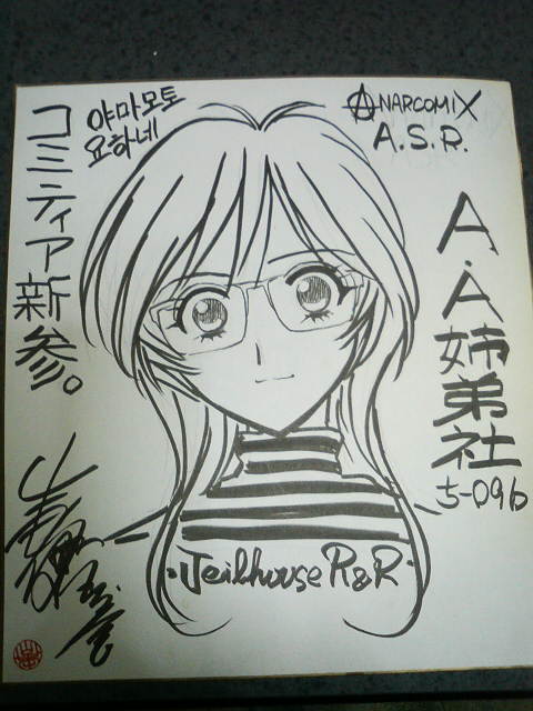 | ■2月27日:日記と言うか月記? 危ない危ない。危うく2月終わるところだった。 不定期と言っても1月に1回は書けるだろうと思ったけどそんな余裕なかった。 とりあえず今月あった大きな事。 2/11にメガネっ娘居酒屋「委員長」昼の部に行ってきました。 もちろん自分ひとりでは行ってませんよ。 このチケットは自分で買ってないんですから。 A「ピクさんこのチケット1枚余分に買ってるんだけど行く?」 P「行く!」 即決でした。まあ若林さん出るしね。その結果・・・・ 最後の大抽選会で色紙が当たりました。 ![]() 内容自体はメガネっ娘居酒屋「委員長」を見てもらえばわかるとは思います。 ちなみにこれは山本夜羽音先生のサイン色紙です。 来月は大変忙しいです。3/6にZUNTATAライブでしょ、 3/20にはROBO太祭りでしょ〜。 忙しい、忙しい(遊びで)。 今日の一言:エルガイムにサクラ大戦は確定かぁ。 |