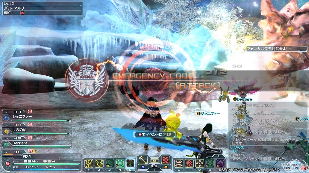 | ■1月20日:愚痴をどうどうと書いたらこうなった。 パラレルエリア引いたからアブダクションも引けるんじゃね? そう思って翌日にナベリウスVHTAへ。 やっぱり出ませんでした。ついでだしスノウバンサー残り2匹を退治するか〜。 ![]() ・・・え? ![]() 今日の一言:ま、マジで!? |