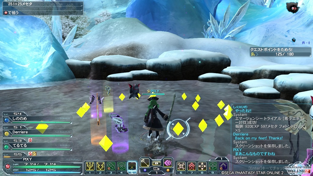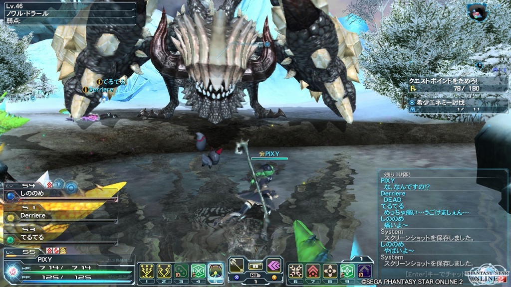 | ■4月30日:ちょー忙しい2 とか書きつつ・・・・水曜日から始まった私立BEMANI学園。 ![]() 日曜日には卒業しました。 各機種をサクサクッとまわるだけだったのでとても楽でした。 最初にGITADORAを解禁した後、ポップン→寺→DDRと解禁してREFLEC→jubeatと解禁した後にポップンカード集めしてたら 最後の曲が解禁できました。ポップンカードもまだラッキーコード付きレアが2枚出てないんだよね・・・ ルート@ドー研とリゼットとみっちゃんのレアが出たからいいけど。 PSO2の方はいいレアといえばそこまででもないけど、凍土実装から8ヶ月経ってやっとクルールコフィン出ました。 肝心の一番欲しいクラーリタ・ヴィサスはいつ出るやら・・・1〜2ヶ月で好きなレアが出るバランスとはなんだったのか? もう凍土潜るの飽きました・・・あ!あとバンシーズロアーも出ました! それからパラレルエリアの変更のお陰か、今月だけで5回パラレルエリア引いてます。内訳は、 ディグナッツ×10、ノワル・ドラール ラッピー×20 ミ・ミクダ×10、リグシュレイダ シグノブルー×10、トランゼクシア×2 エグ・ラッピー×20 まだ龍祭壇のドラゴン・エクスとも戦ったこと無かったのに・・・ ![]() ドロップはお察し。 ![]() 最近やる事なくて困ってます。LVは全然上がらないし、凍土かなり飽き気味だし、アドバンスは 行きたいところのカプセルないしソロでは無理だし。 今日の一言:なのでちまちまとチームオーダーつぶしくらい?3000→4500ptsに増えてるから。 |