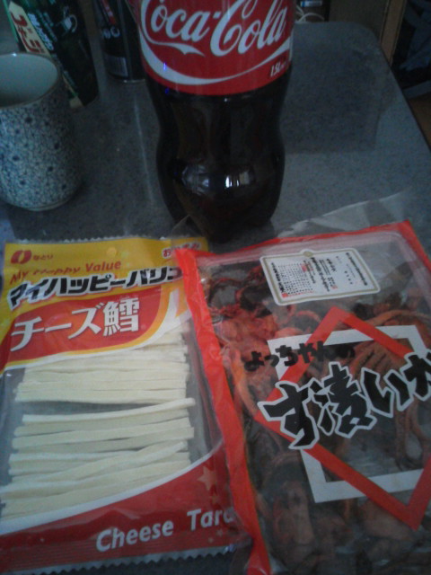 | ■8月12日:暑い・・・ 暑い・・・暑過ぎる・・・・ このままでは駄目になってしまうと買い物へ。 そして買ってしまった物がこれ。 ![]() 今日の一言:レッツ干物妹ライフ!酢漬けイカを食べたあとにチーズ鱈で口の中をまろやかに。その後コーラで口の中を潤す! |