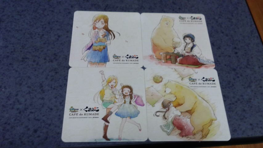 | ■6月26日:大食い選手権 土曜日にカラオケでも行かない?と誘われたので丁度いいやと言わんばかりに午前中にとあるお店へ。 11時過ぎてから来店して早速目当てのものを注文して席で待つ。 そして届いたものは・・・ りんごとはちみつハニトー ![]() ナツのアップルティー ![]() お持ち帰りでクマ井ナツパンを2つ。 ![]() 今朝おいしくいただきました。 ![]() 計4品の購入でコースターを4枚貰った。右下が自分の中で大当たり ![]() うん・・・一人でパン1斤は辛かった・・・ 今日の一言:でもPSO2のアレは行かなかったんだよね・・・ |