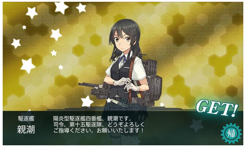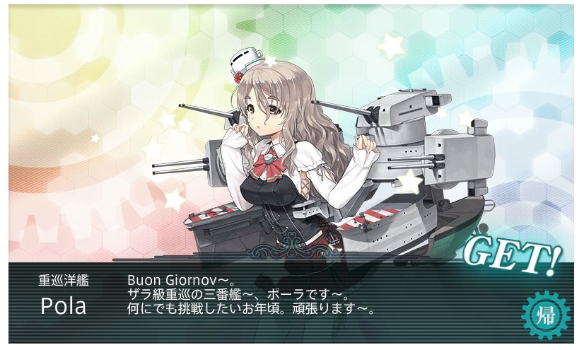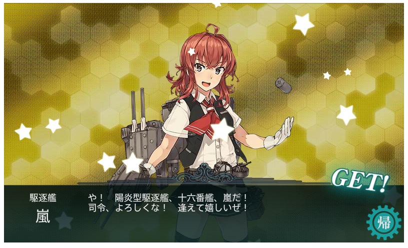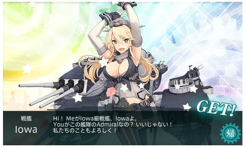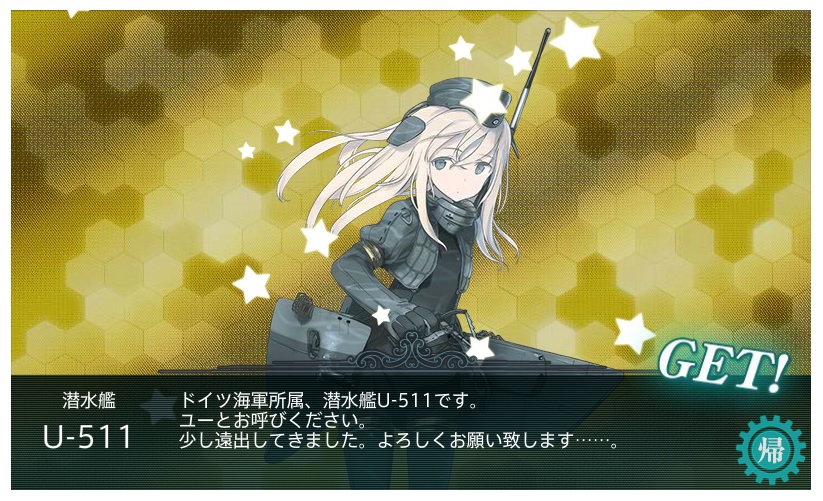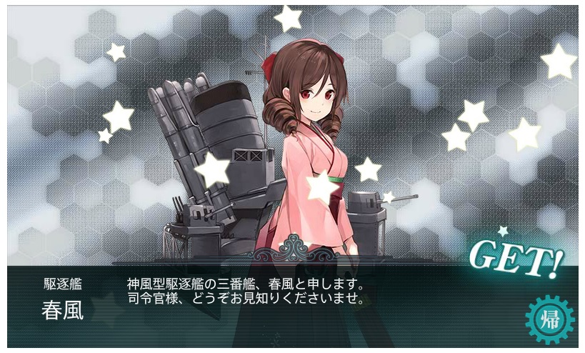 | ■6月4日:艦これ春イベの結果 一応E−7まで完走しました。 が、E−4までは甲作戦で行けてましたがE−5とE−6が馬鹿みたいにはまって 泣く泣く丙作戦に難易度を落としてクリアした次第。 E−5甲がラスダン出撃回数167回、E−6甲がラスダン出撃回数71回で残り2週間切ろうと してたのでもう時間的に間に合わないとの判断でした。 今回入手した主な艦娘がこの辺り。 ![]() ![]() ![]() ![]() ![]() ![]() ![]() 今日の一言:春イベ追加艦娘は全部げっちゅ |