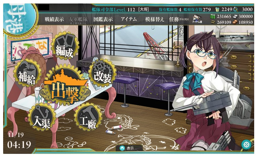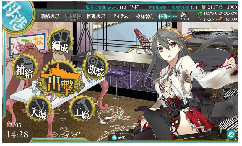 | ■12月30日:艦これ秋イベントの結果&近況 艦これ秋イベは時間が足りなくて甲作戦での攻略は早々に断念。 第2作戦以降はみんな乙でした。 開始時点での資材 ![]() 終了時点での資材 ![]() 今回の新規艦娘1 ![]() 今回の新規艦娘2 ![]() 今回の新規艦娘3 ![]() 今回の新規艦娘4 ![]() まあそうなったのの原因が近況にあるのですが・・・ 12/1をもって出向先から自社に復帰しました。 その引継ぎ、残作業の為に11月の平日はほぼ何も出来ず、なんとかクリアは出来たって感じ。 12月に入って自社に戻る矢先に火を噴いてるプロジェクト3つ抱えて・・・ まあなんとかしてそれぞれ2週間は取り返したんですけどね。1月末納期は死守できそう。 そんなこんなで音ゲーも殆ど出来ておらず、楽観視が出来そうになった12月中頃にようやく まとめて手出し始めた感じです。隠し曲殆ど解禁できてないよ・・・ 今日の一言:そんなこんなでもう年越し目前です。なんか変なゲーム始めてるけど。 |