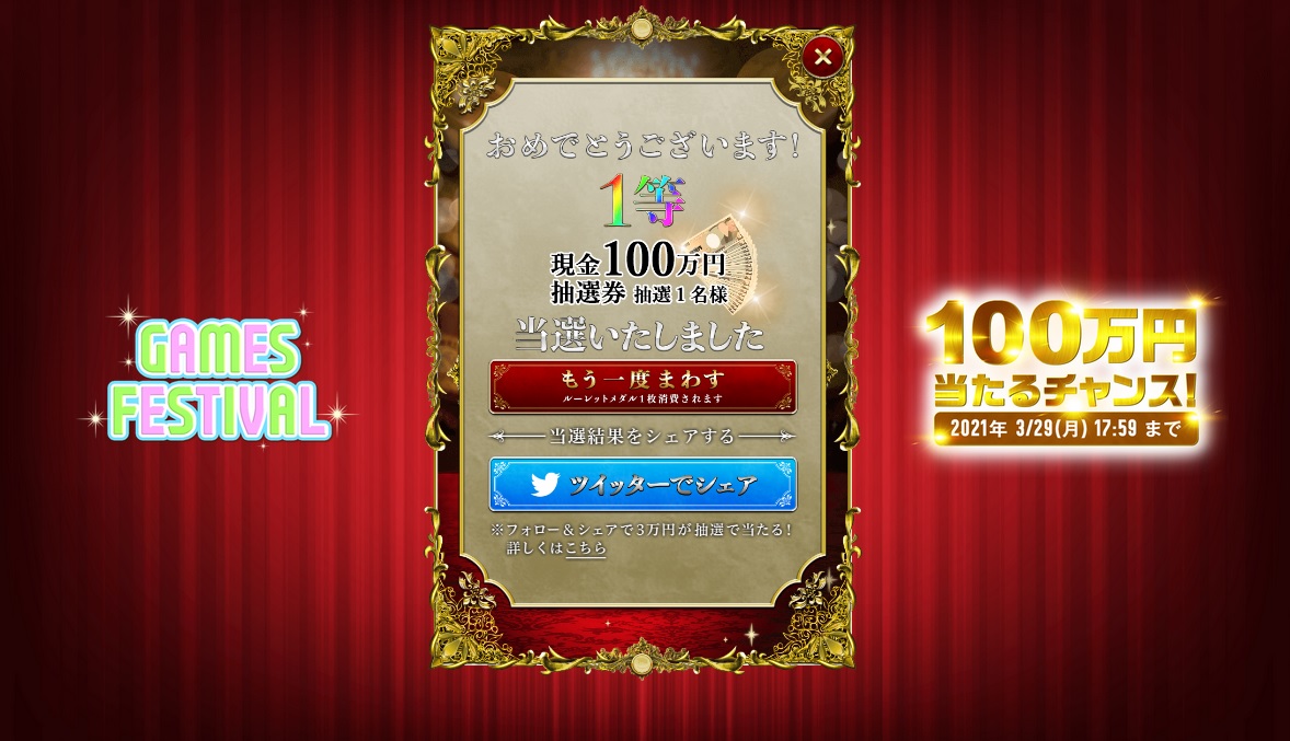 | ■2月27日:超大事故発生 DMMで始まったキャンペーン。どうせ今回も5等しか当たらんのだろ?とポチポチ押してました。 ![]() ん?なんか今「激熱!」とか画面に表示されたな・・・・・!? ![]() 思考が追いついてない・・・・ ![]() マジで!? 一応サイトをすみずみまで確認したところ・・・ 2021年3月29日(月)以降に当選者のみに「メール」で告知します。 当選された方には「送金に必要な情報(銀行口座情報、顔写真付身分証明書など)」をご提出いただきます。あらかじめご了承ください。 あのー免許証とかパスポート持ってないんで顔写真付身分証明書ないわー 今日の一言:まず本当に3/29にメールが来るのか?からだと思うけど・・・ |