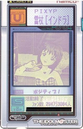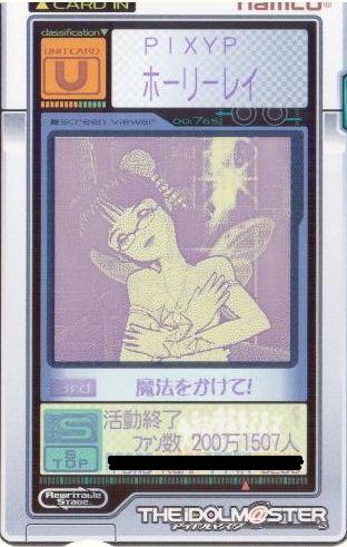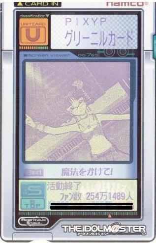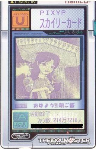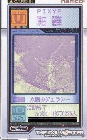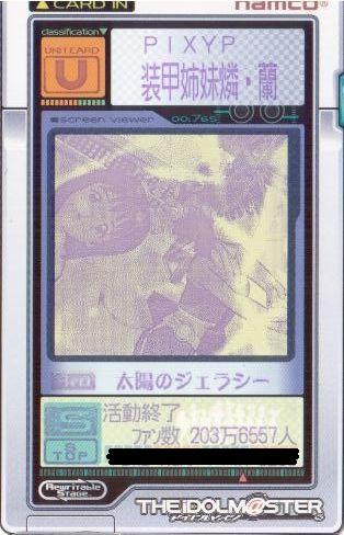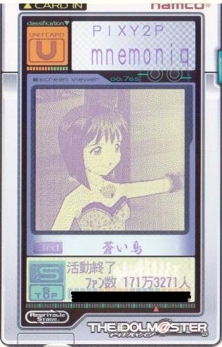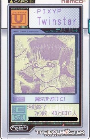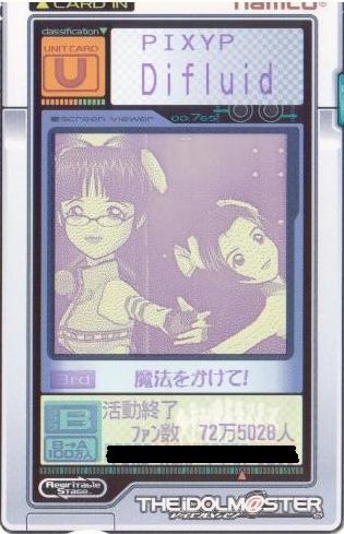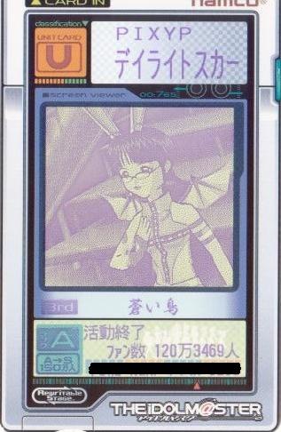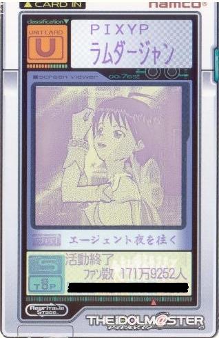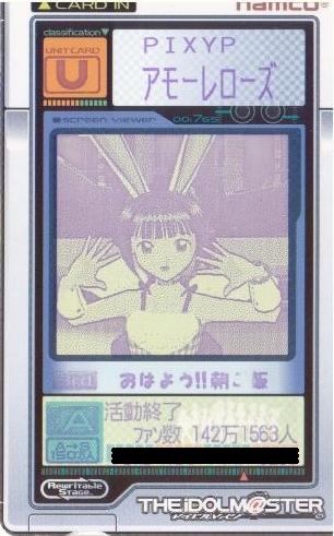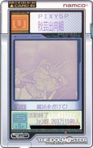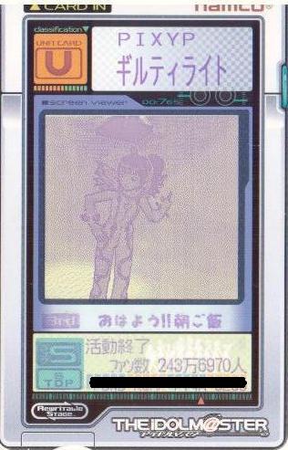 | 備考 | 事務所内対抗戦にて使用したユニット。持ち歌のみで戦う為、 DAパラメータの減衰は地獄のようでした。 |