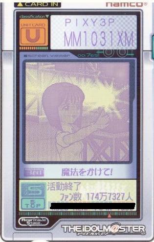 | 備考 | サブカードでのあずささんソロリベンジ。 メインカードでは成せなかったSランク入りを無事達成。あずささんランキングでも 52位まで順位を上げてくれた素晴らしいユニットでした。 |