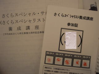 2週に分けて(勝手に)なんとか全出席をはたし、めでたく、さくらスペシャリスト(仮称)に。。。の予定。3月末に認証式があるらしい