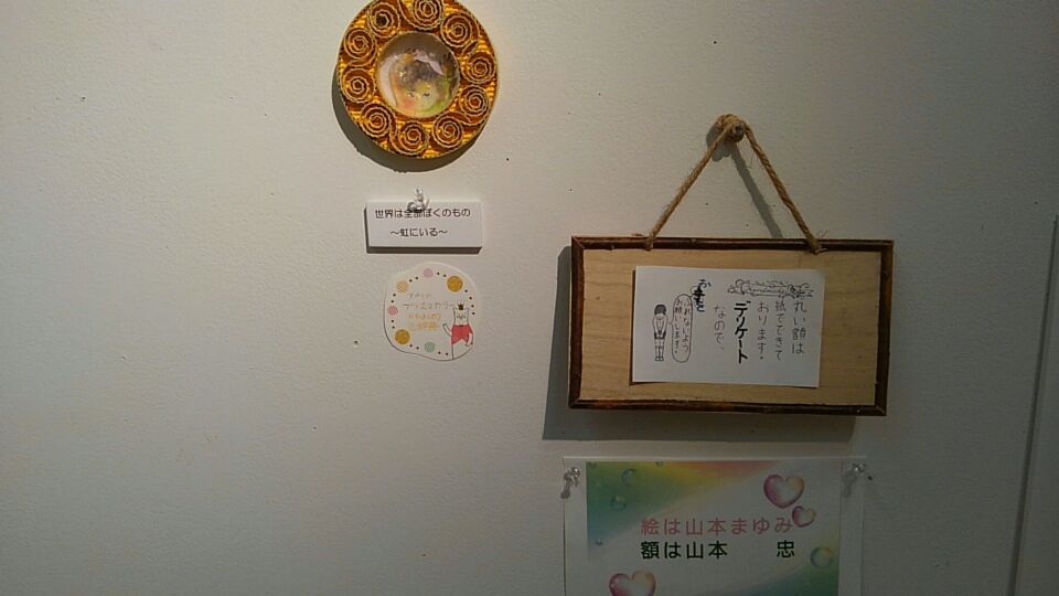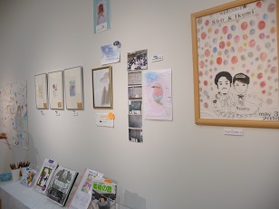 ひみつさんのお隣には色鉛筆画講座受講生のお作品をお借りして展示