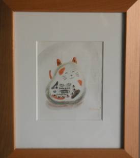 余談ですが(というか告白ですが)この“kitchen-timerねこ"には、実は数字の“1"がありません。私は随分後になってソレに気づきました。NHK文化センターの美術大賞展で入選したねこちゃんです。“1"がない!と慌てたのは私の手元に戻った後の事でした。この話をしたら笑われました。ただ笑われました。