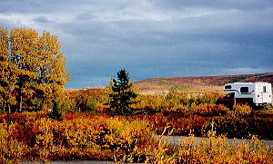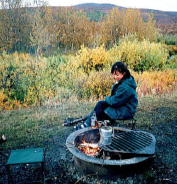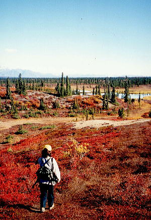 Highwayへ。昨年も走ったこの道。オフロードで運転はしづらいけれど、風景は本当にダイナミック!運転しながらバックミラーを見るといつもマッキンリーの姿があり、思わず笑顔になる。急ぐ旅でもなし、風景のきれいなところで止まっては、写真を撮ったりしながらのんびり進む。この風景の中ではカーペンダーズの音楽がよくあう。いろいろな曲をテープにコピーしてきたけれどカーペンダーズが一番。きっとこれからどこかでこの音楽を耳にする度にアラスカの風景が浮かんでくると思う。
