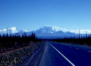 Glenallenの町で1号線に入り、進路は西へ。1号線は左手にChugach Mountinsが広がっていて、これまた美しい。13:00過ぎにGlaicier(氷河)の眺められる高台に車を乗り入れて、外でマフィンを焼く。ベーゴンエッグをはさんで食べるとおいしい。この旅の相棒のシノブちゃん(シノブねーさん)は普段は登山が趣味。ダンナ様となる人とも山仲間として知合ったそうだ。そんなわけでアウトドア関係の料理は得意。簡単でおいしい料理をいろいろ教えてくれた。