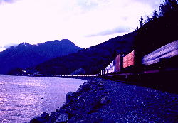 本日はAnchorage南のBird Creek Campgroundに泊まる。海に面した美しい州立のキャンプ場。海沿いをアラスカ鉄道が走っていた。長いアラスカ鉄道の列車が通りすぎるのを沈む夕日と一緒に眺めていた。本日の走行距離300マイル。約460km。ちかれた。キムチ鍋を食べて寝る。
