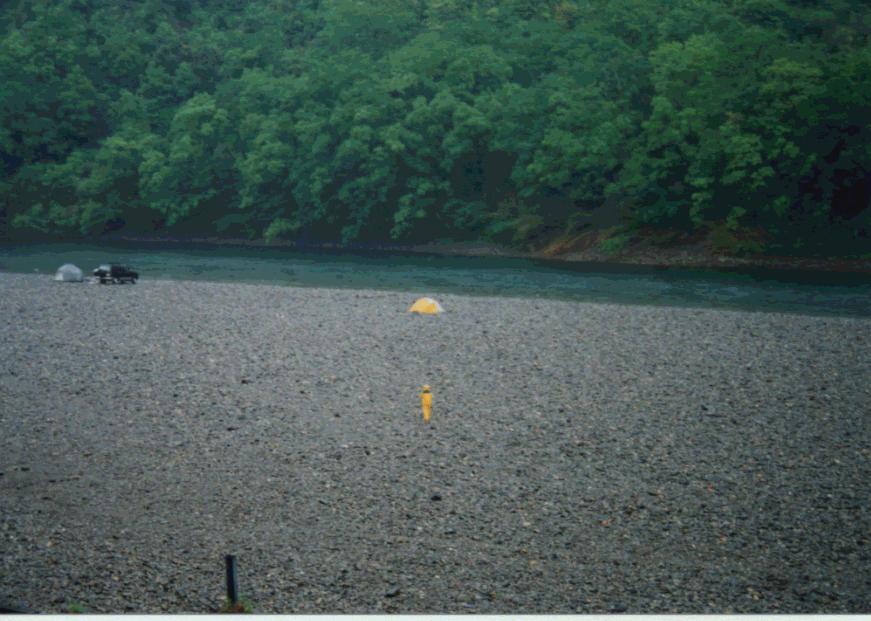 本日のお宿とする。19:00、広い河原にテントは5つのみ。