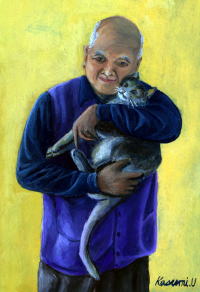 犬年だけれど、来年の年賀状は何にする?と聞いたら、いやがるネコをギュっと抱きしめたQパパです。