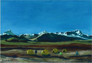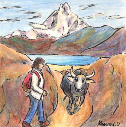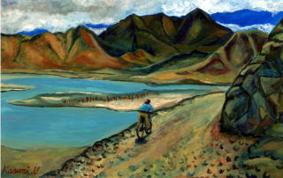 これはQたろう用の年賀状。2005年、一番心に残った場所、チベットでのサイクリング。パタゴニアの風景も美しかったけれど、絵のような風景なのでかえって絵にはしづらく