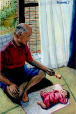 2005年 この1年一番のニュースといえば、妹に子供が生まれたこと! とにかくみていてあきない、かわいい! <水彩> |